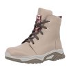 Стильные, удобные, и в то же время простые ботинки для активной зимы. Акцент сделан на яркой динамичной подошве, которая при морозе в минус 30 не скользит и не промерзает. Ботинки утеплены натуральным шерстяным мехом. Есть застежка молния.