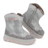 Малышовые зимние ботинки для девочки. Позвольте малышке радоваться зимним прогулкам в стильных и надежных ботинках, созданных специально для самых маленьких модниц. Модель выполнена из натуральной кожи: сочетание мягкого велюра и гладкой кожи в благородном сером оттенке смотрится элегантно и современно. Украшением ботиночек стала забавная аппликация в виде милого медвежонка — такой декор обязательно понравится ребенку. Особое внимание мы уделили защите и комфорту: союзка изготовлена из прочного материала матрикс-кевлара, который обеспечивает дополнительную износостойкость. Протекторная подошва из ТЭП с увеличенными бортиками бережно защищает ножки от влаги и снега, позволяя малышке свободно исследовать зимний мир. Для легкости и удобства обувания сбоку предусмотрена качественно прошитая молния — даже малыши справятся с ней без труда! Собственная колодка фабрики "Лель" гарантирует правильную посадку по стопе, а умеренно жесткий задник и носок поддерживают стопу и способствуют формированию здоровой и правильной походки. Внутри – трехслойная вкладная стелька, верхний слой которой, как и вся подкладка, выполнен из натурального густого меха. Такая плотная набивка отлично сохраняет тепло и защищает от холода даже в самые морозные дни. Специальная петелька позволит без усилий достать стельку и просушить ее при необходимости. Размерный ряд разработан специально для малышей — чтобы каждая юная принцесса могла почувствовать себя по-настоящему уютно и стильно.